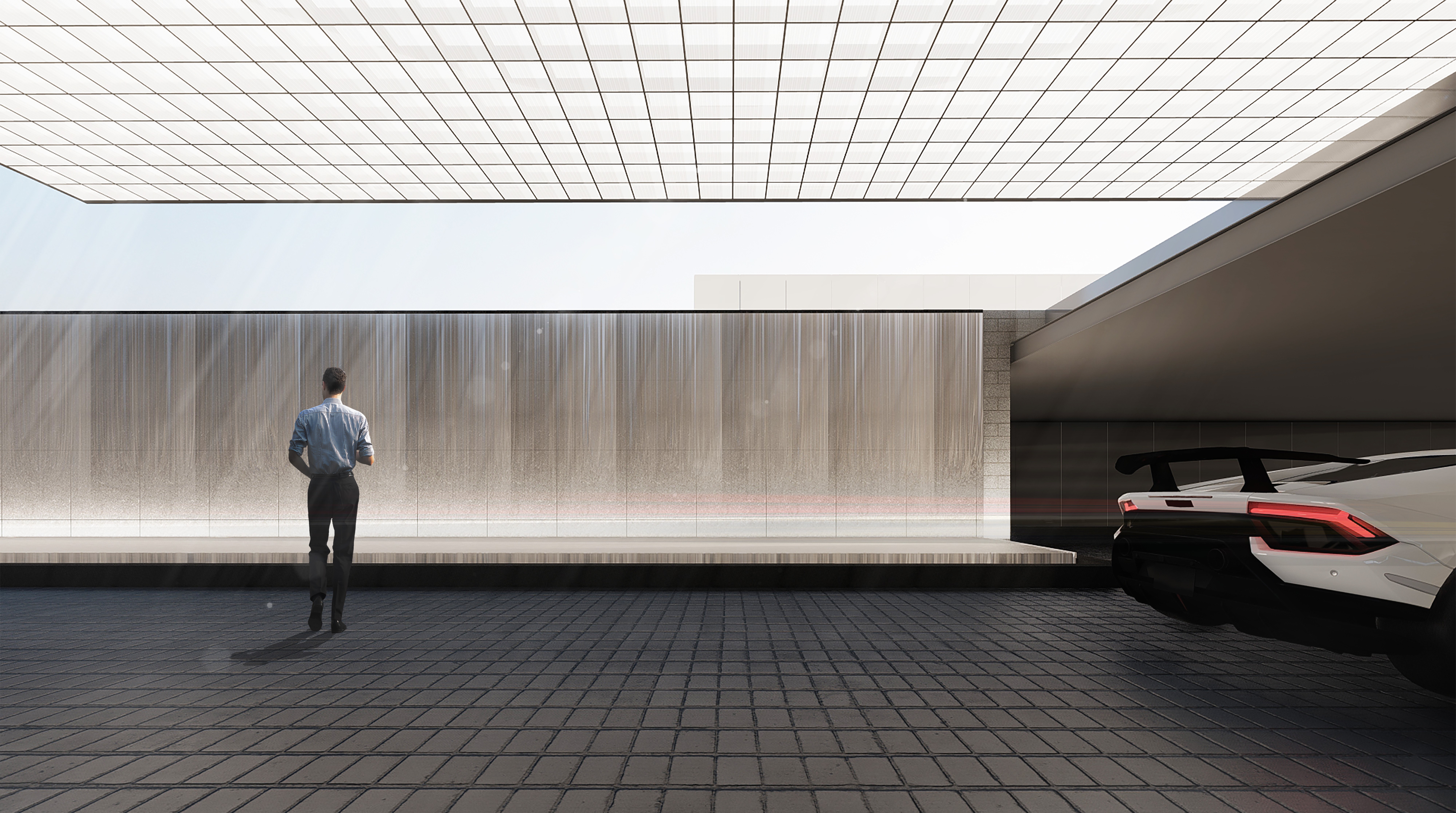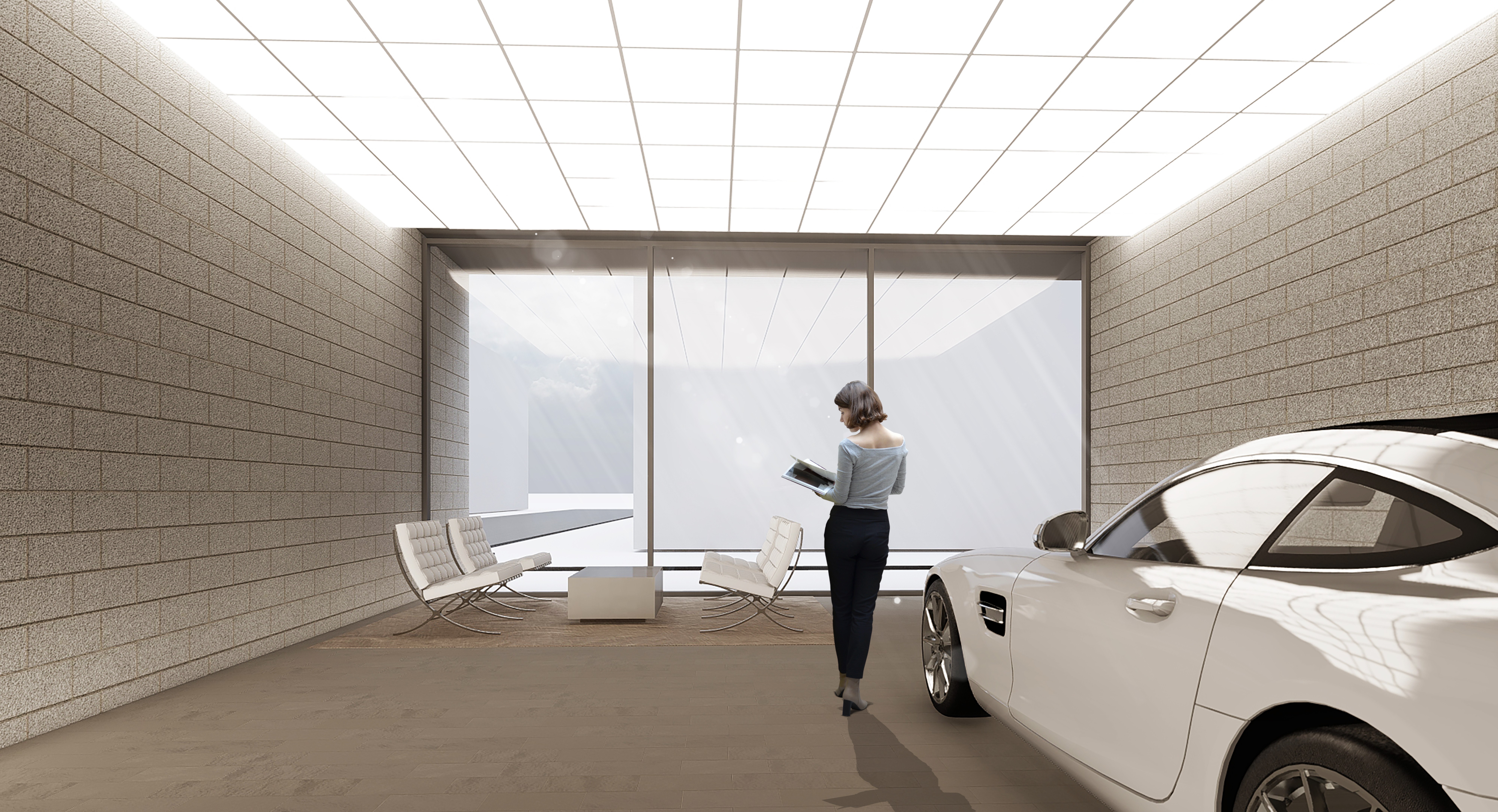 A unique lighting feature further enhances the presentation. With a simple switch, each parking bay can be illuminated with a vivid thin line of LED meticulously installed in the grout line. This attention to detail ensures that each vehicle is showcased in exceptional light, allowing visitors to appreciate the intricate details of each car on display.