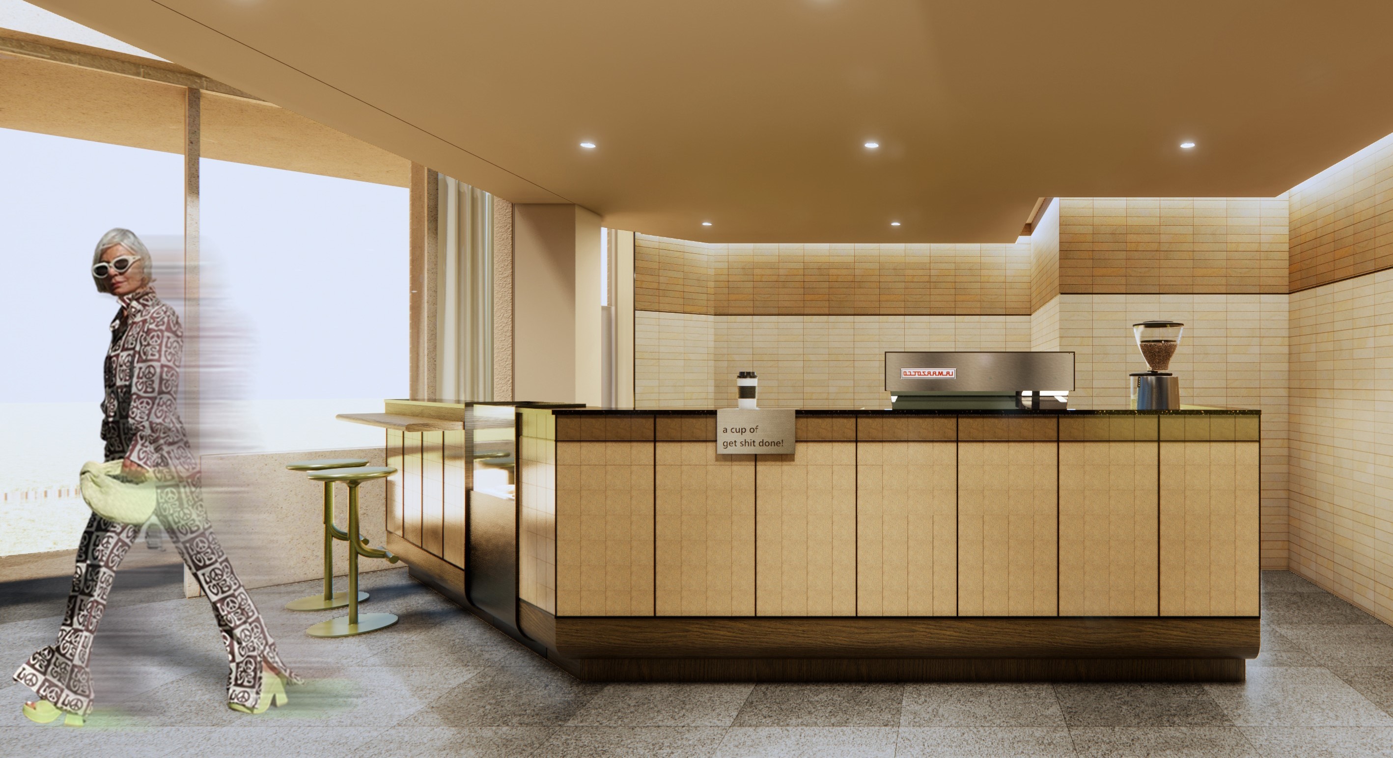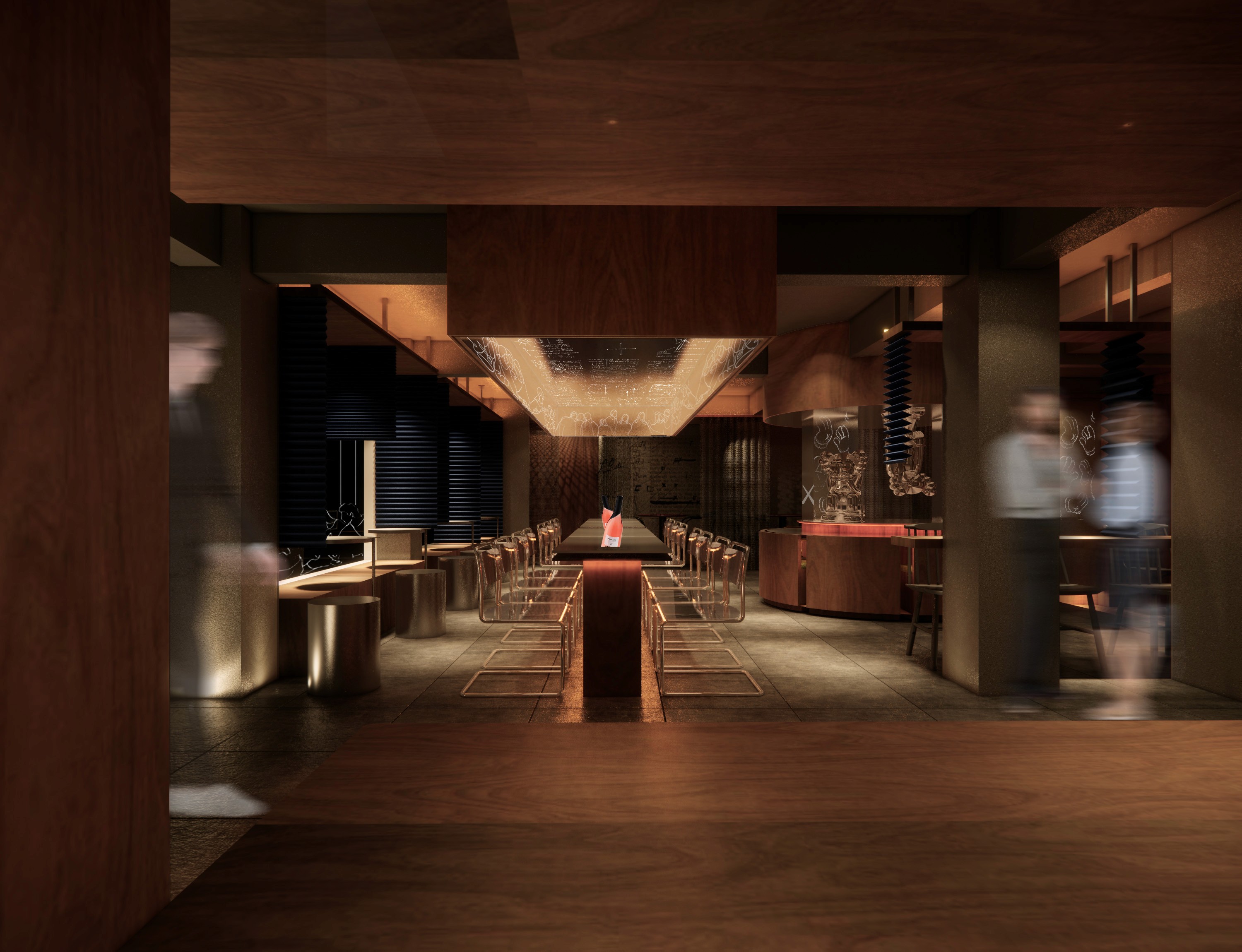 SAD CAFÉ AND WIND BAR represents a comprehensive interior design project for a restaurant, encompassing a lounge area, wine cellar, coffee bar, and a spacious kitchen spanning over 100 square meters.