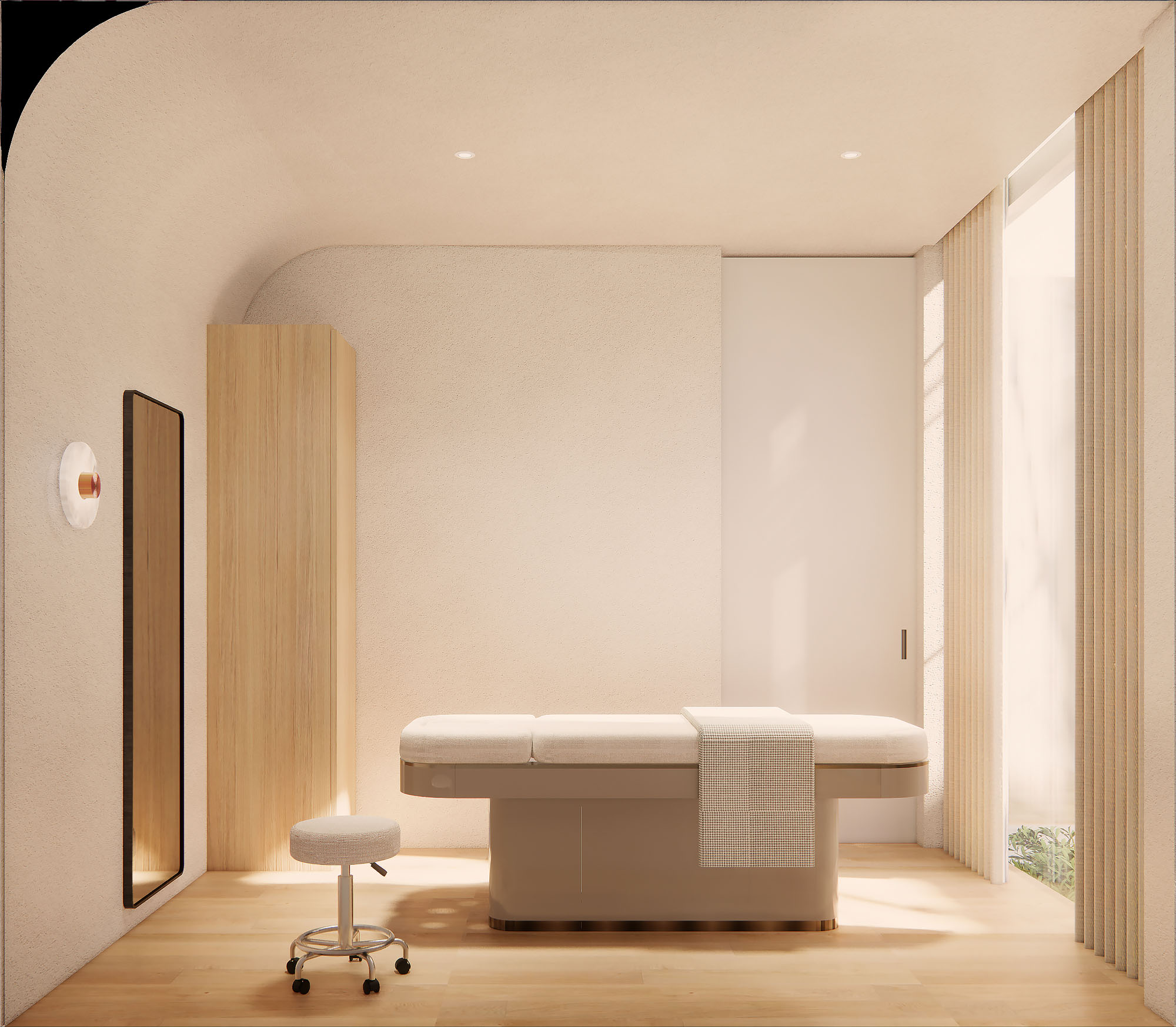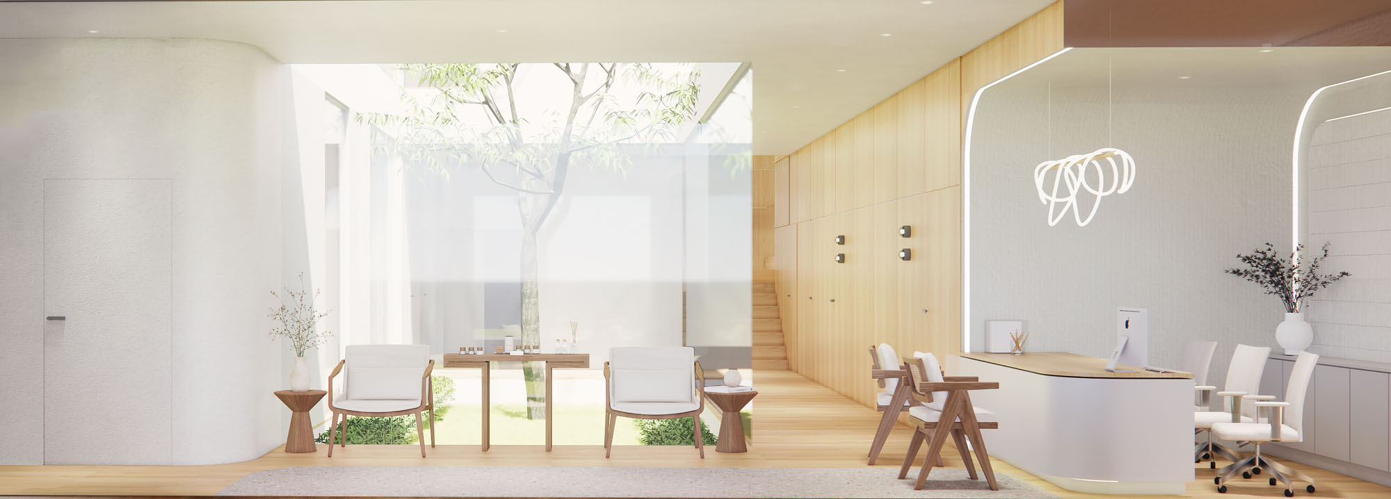 The treatment rooms, strategically positioned around the courtyard, offer a serene view, creating an immersive experience that aligns with our commitment to holistic well-being. The aesthetic harmony of the interior spaces, coupled with the functional benefits of our façade, amplifies the healing ambiance, making every visit a revitalizing escape.