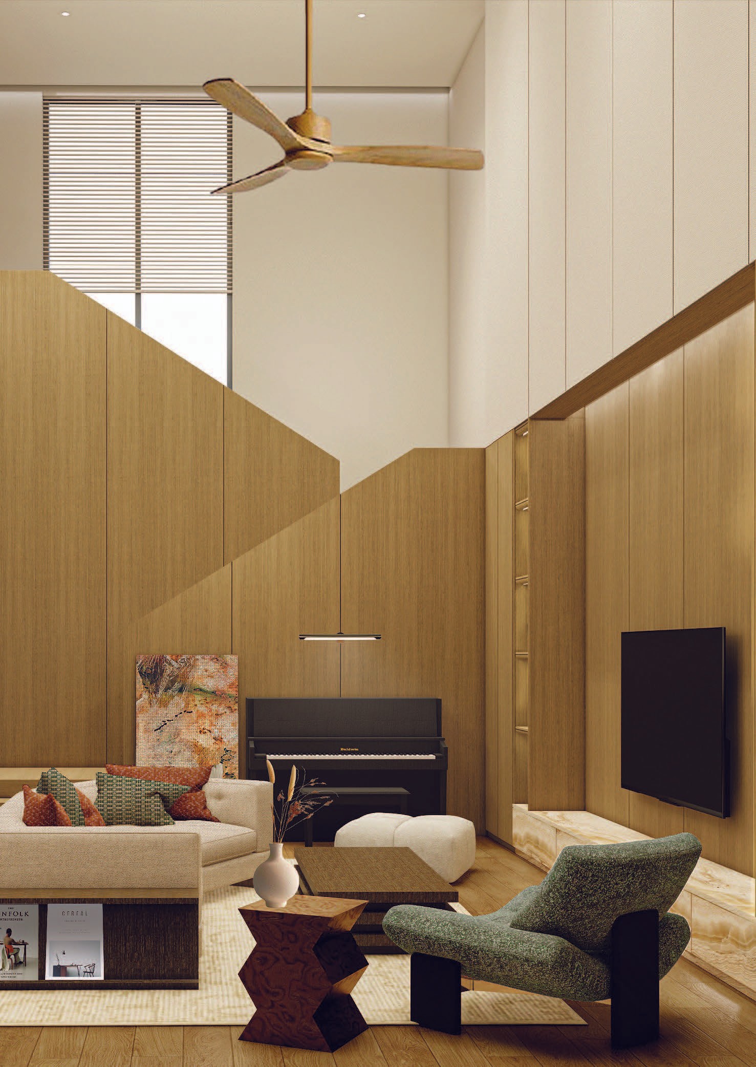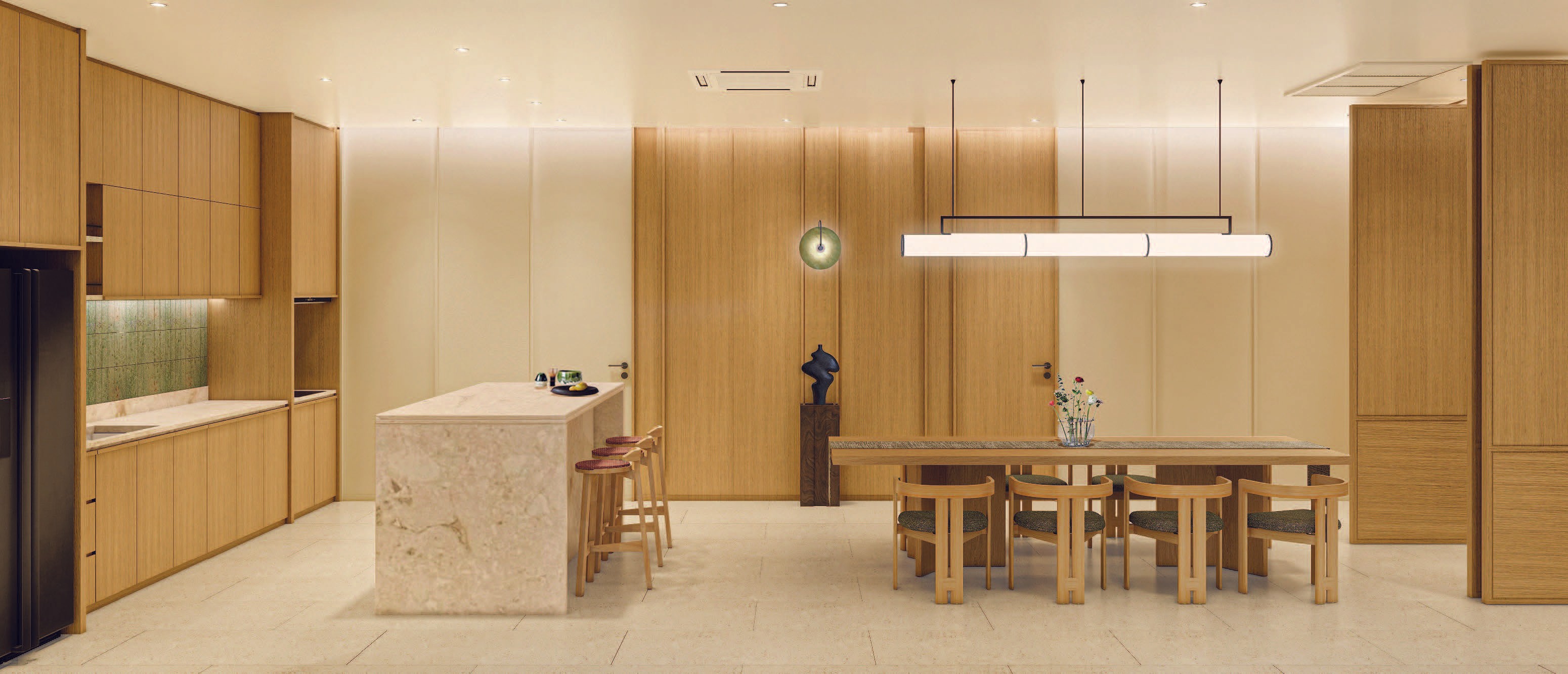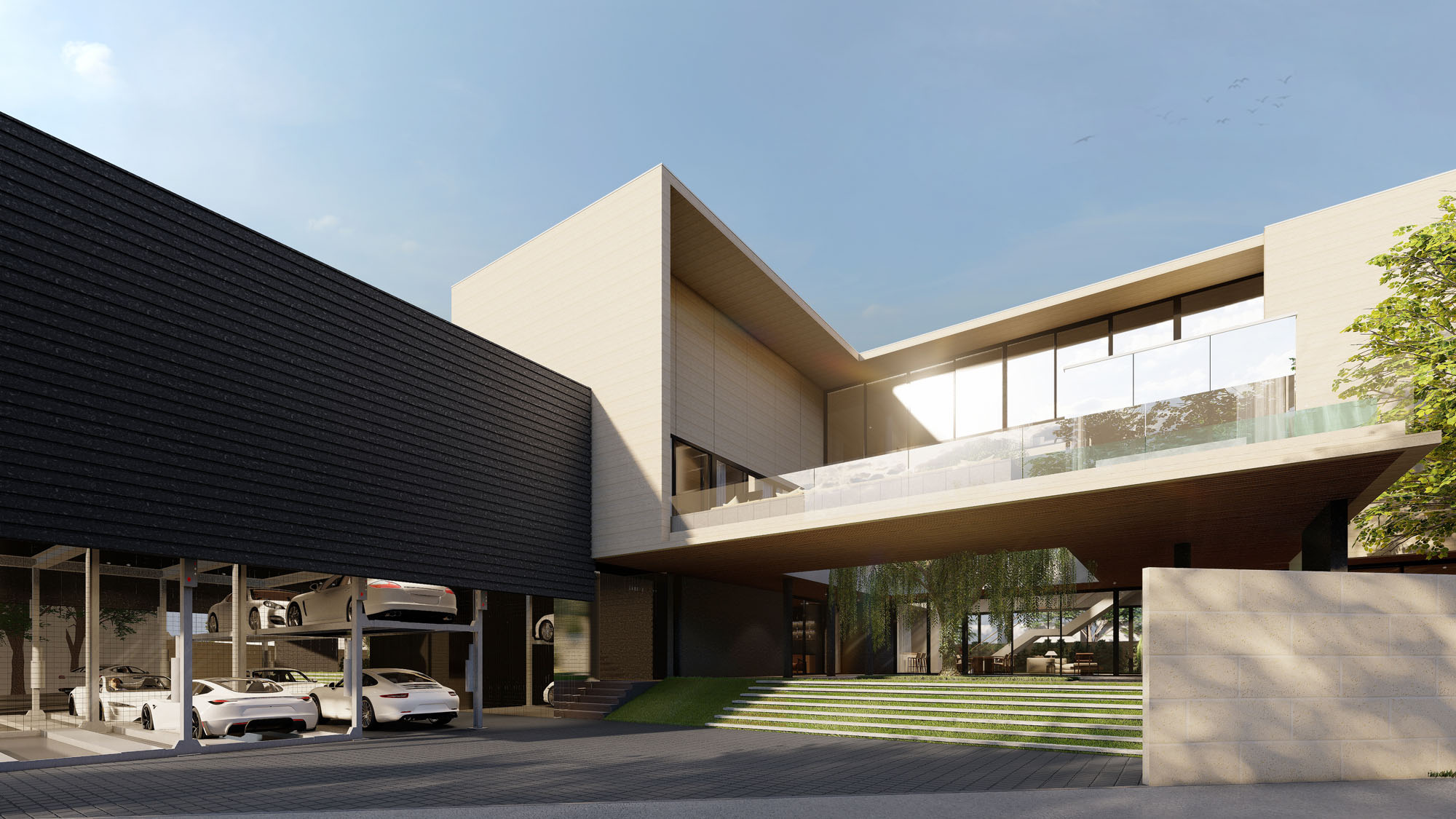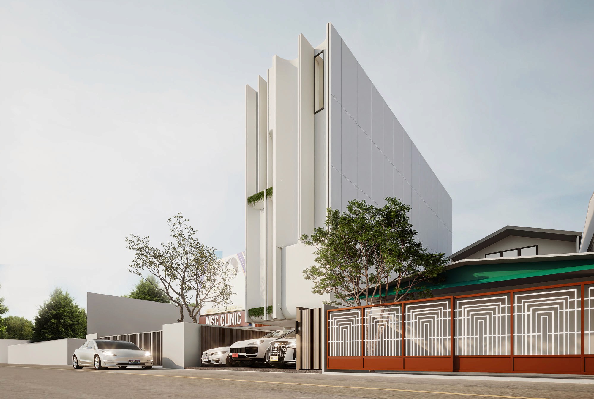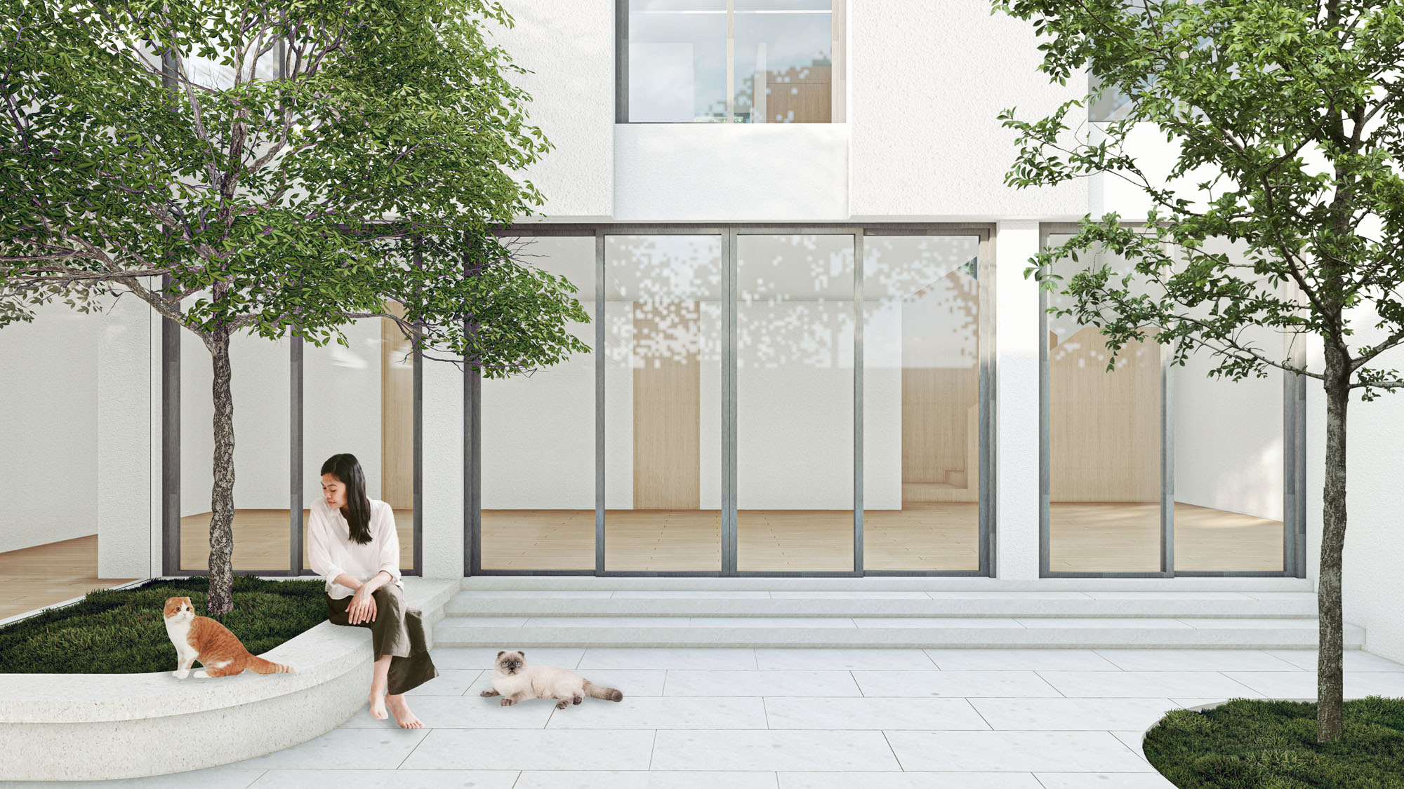 Rooted in the idea of simplicity and calmness, the design expresses a modern tropical home where light, air, and greenery flow seamlessly through the spaces. A restrained palette of white surfaces, warm wood, and soft textures enhances clarity and balance, while the central courtyard brings nature into daily life. BENZ HOUSE embodies a refined minimalism—quiet, open, and deeply connected to its surroundings.