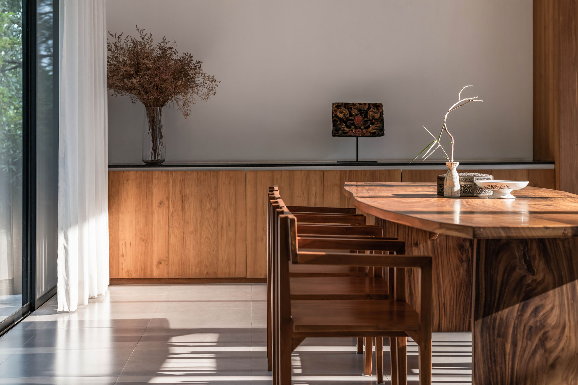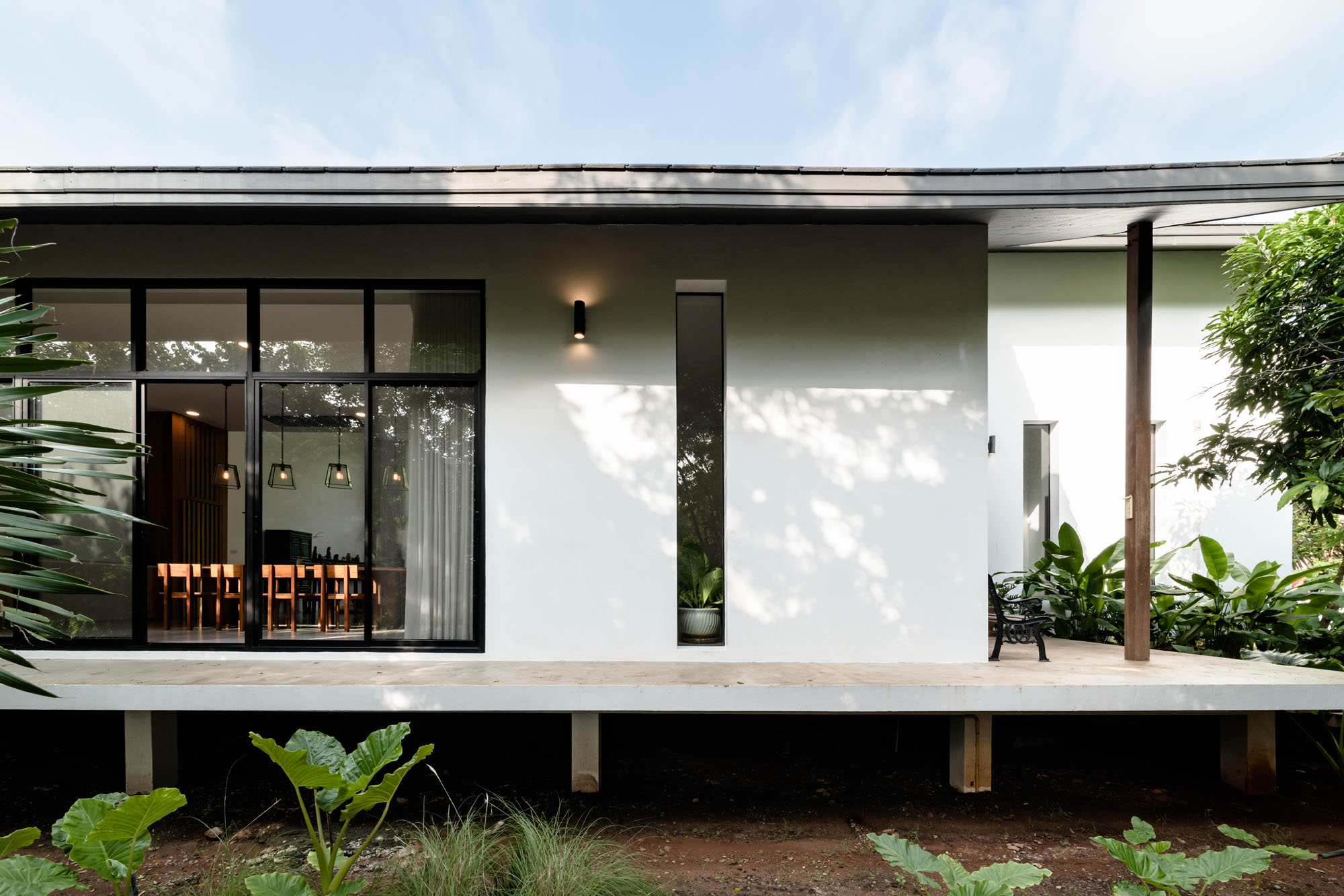 Settle within the rustic charm of rural Thailand, this family home is a harmonious sanctuary for four members, with additional spaces thoughtfully crafted to accommodate out-of-town relatives. Externally, the design captivates with its minimalist elegance, seamlessly integrating into the picturesque surroundings and commanding attention as a captivating focal point.