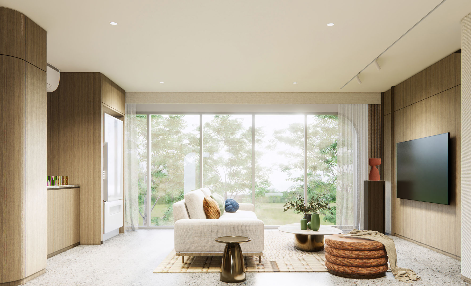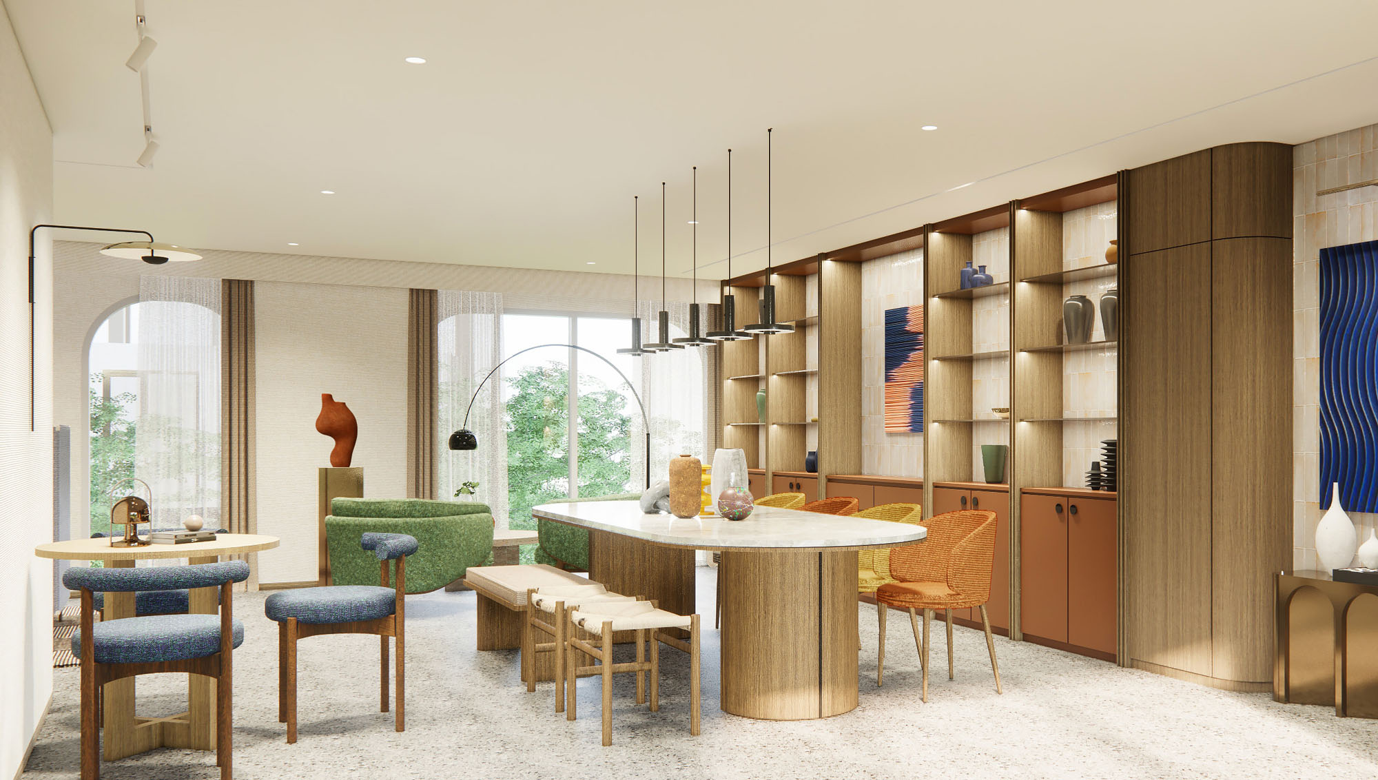 Drawing inspiration from the 1980s merging with the 2020s, the design looks backward to the adaptive and populist postmodernist movement. Additionally, it nods to the New Classical architecture that emerged during that period, rejecting continuity with modernism and returning to traditional design principles. In this condominium, the New Classical influence is evident in the resurgence of pre-modern forms, with a reinterpretation that extends beyond traditional Western styles to include Gothic and non-Western historicist elements.