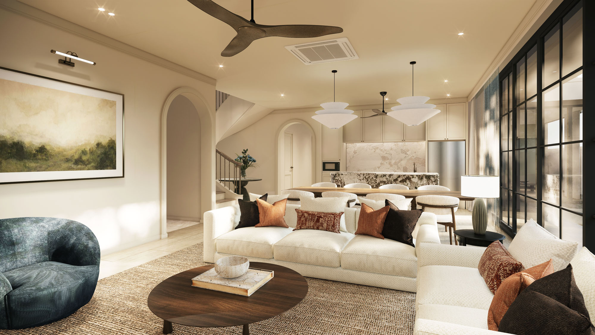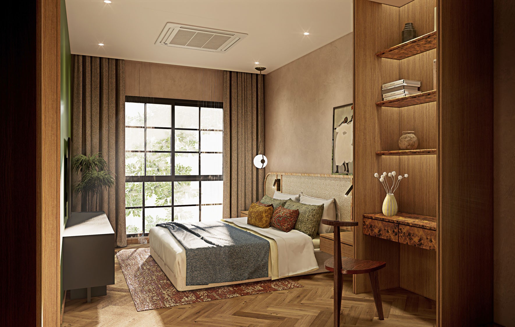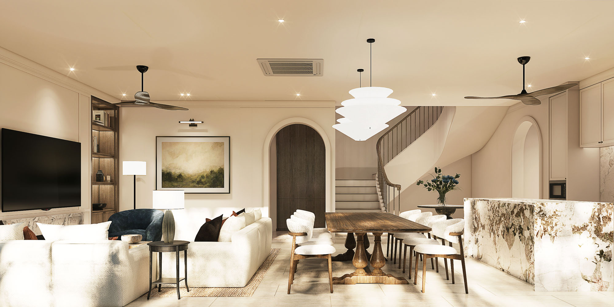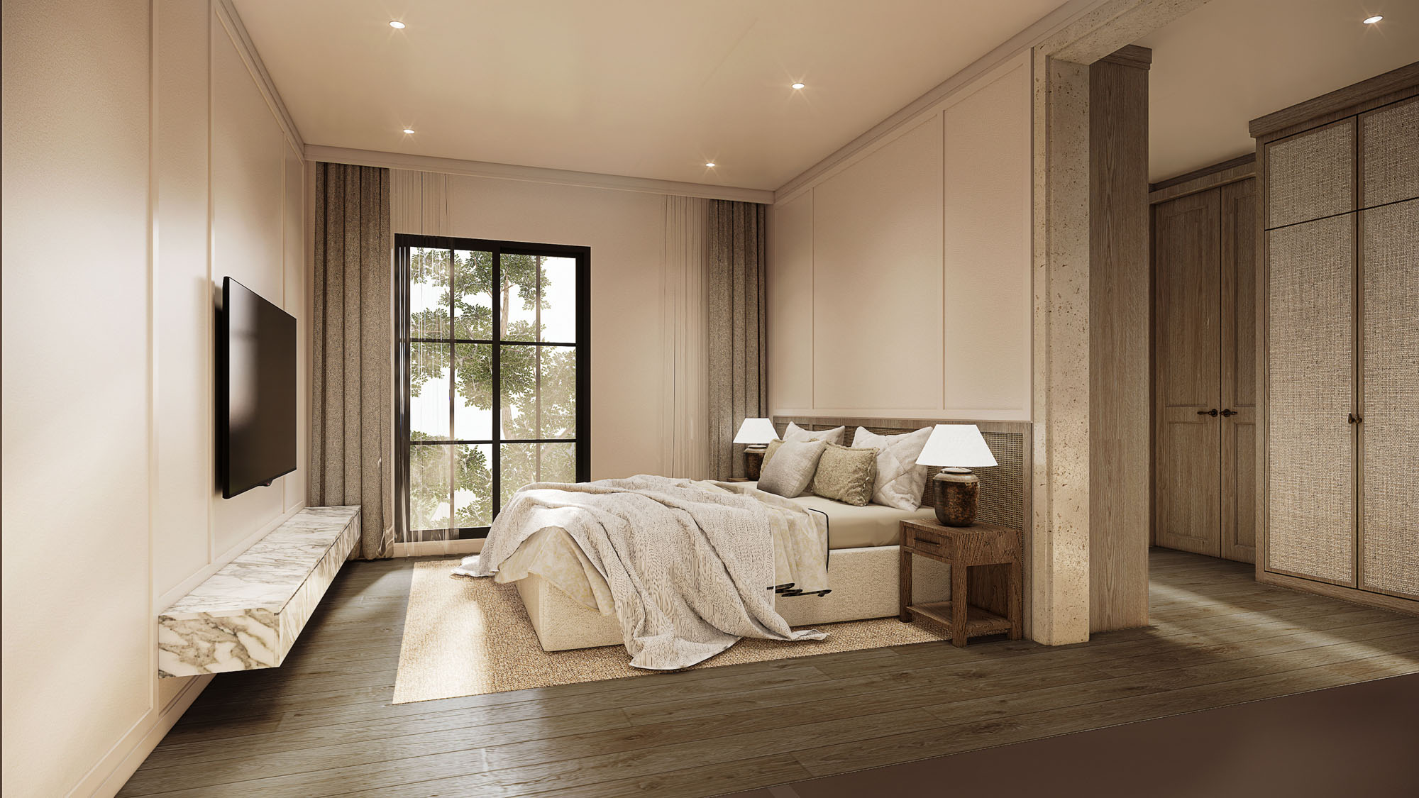 Blending classic proportion with modern refinement, the design conveys timeless elegance through its balanced symmetry, clean lines, and light-toned façade. Framed windows and subtle detailing evoke a sense of grace and order, while the landscape softens the architectural form. K MAY HOUSE reflects a contemporary reinterpretation of urban classic living—elegant, composed, and enduring.